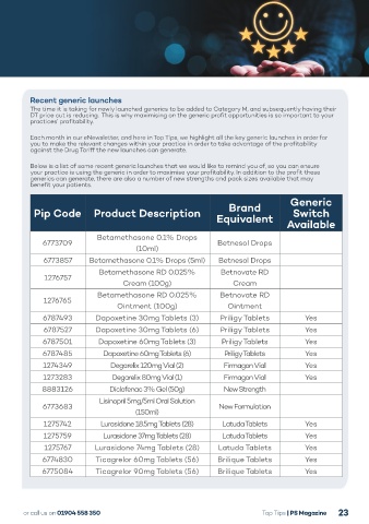 Each month in our eNewsletter, and here in Top Tips, we highlight all the key generic launches in order for