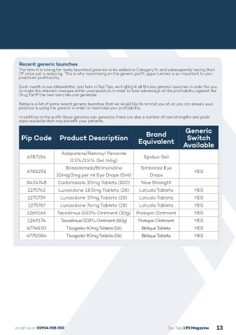 Each month in our eNewsletter, and here in Top Tips, we highlight all the key generic launches in order for you