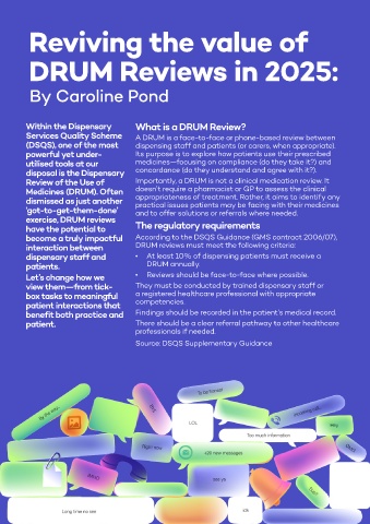 Within the Dispensary What is a DRUM Review? Dispensary teams often interact with patients far more frequently than GPs. That positions