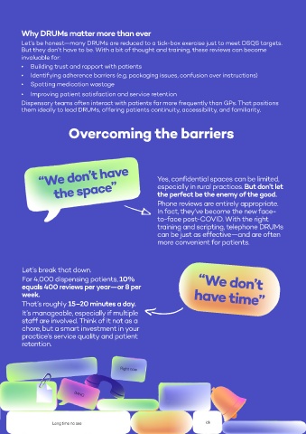Let’s change how we • Reviews should be face-to-face where possible. training and scripting, telephone DRUMs