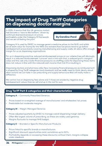 34 PS Magazine |Impact of Drug Tariff Categories Buy direct online at PSUK.co.uk