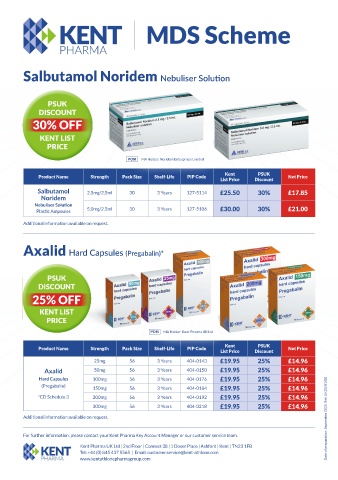 For further information, please contact your Kent Pharma Key Account Manager or our customer service team.