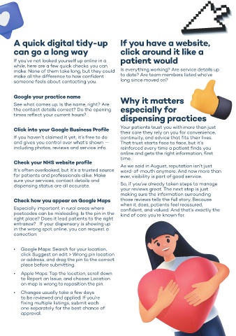 for patients and professionals alike. Make ever, visibility is part of good service.