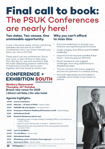 18 PS Magazine | Final call to book: The PSUK Conferences