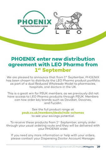 PHOENIX enter new agreement with LEO Pharma | PS Magazine 29