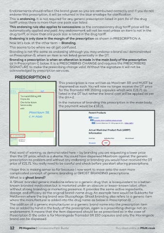 This endorsing rule also applies to concessions as the concessionary drug tariff price will be