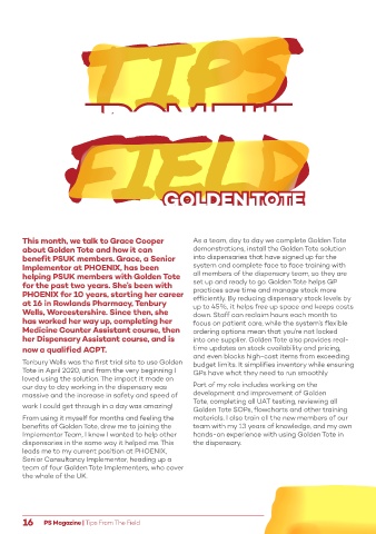 helping PSUK members with Golden Tote                 all members of the dispensary team, so they are