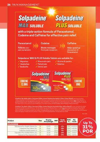 Solpadeine Max Soluble Tablets, Paracetamol 500mg, Codeine Phosphate Hemihydrate 12.8mg, Caffeine 30mg (P) contain paracetamol,