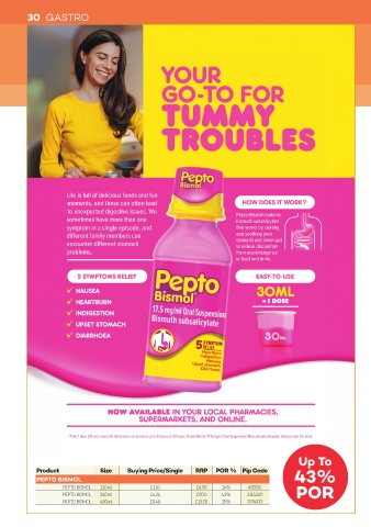 PEPTO BISMOL 120ml £3.10 £4.90 24% 455576 POR