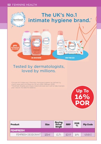 **Femfresh Washes and Wipes match intimate skin’s pH to help maintain