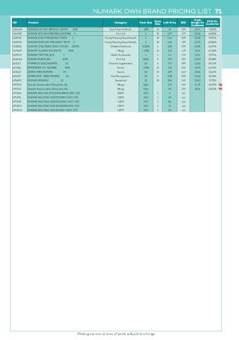 PIP Product Category Pack Size Case Unit Price RRP Margin for Customer