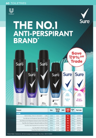 SURE W ROLL-ON COTTON FRESH 50ML 50ml £1.12 £2.29 9% 41% 2503886
