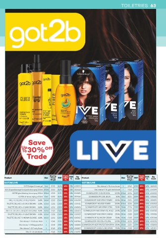 PALETTE DELUXE 3-65 CHOC BROWN 142ML 142ml £1.81 £3.00 15% 28% 4347431 SCHWARZKOPF MOUSSE POWER 200ML 200ml £2.24 £5.99 20% 55% 4350302