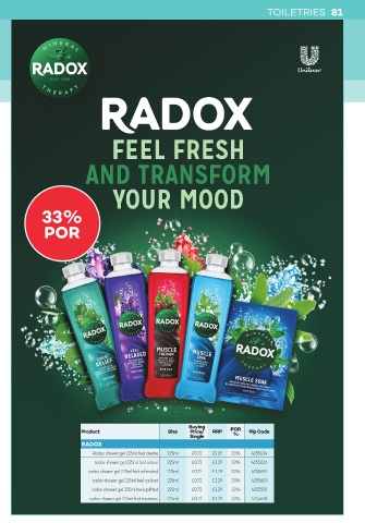 radox shower gel 225ml feel refreshed 225ml £0.72 £1.29 33% 4255691