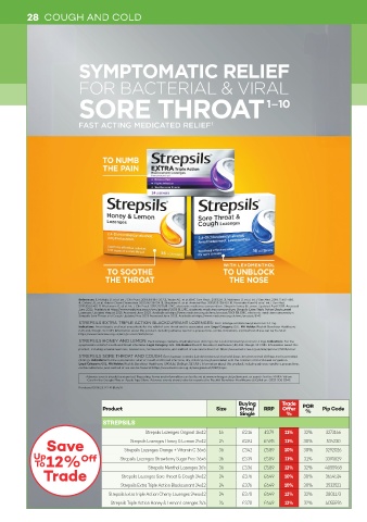 Trade                    Strepsils Lozenges Sore Throat & Cough 24x12  36  £3.36  £5.89  10%  32%  4055968