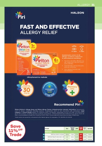 Trade PIRITON SYRUP 1X150ML 150ml £3.48 £7.00 11% 40% 220392