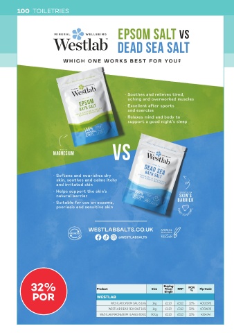 WESTLAB EPSOM SALTS 1KG 1kg £2.20 £3.12 32% 4002390