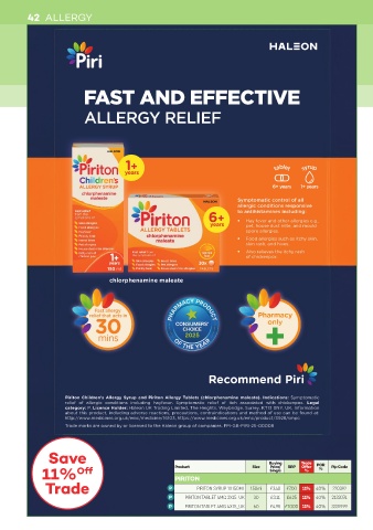 Trade                                           PIRITON SYRUP 1X150ML  150ml  £3.48  £7.00  11%  40%  220392