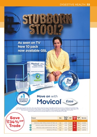 Trade MOVICOL EASE CITRUS 10 SACHET PACK UK 20'S £3.38 £10.89 3% 34% 4348694