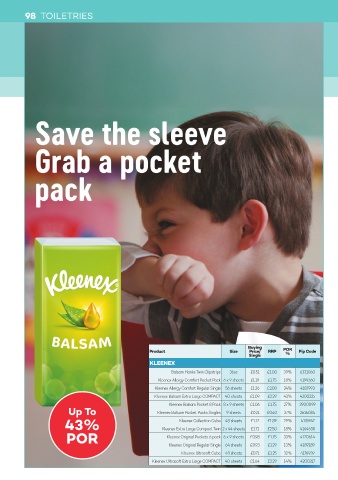 Up To Kleenex Balsam Pocket Packs Singles 9 sheets £1.06 £0.40 27% 3900099