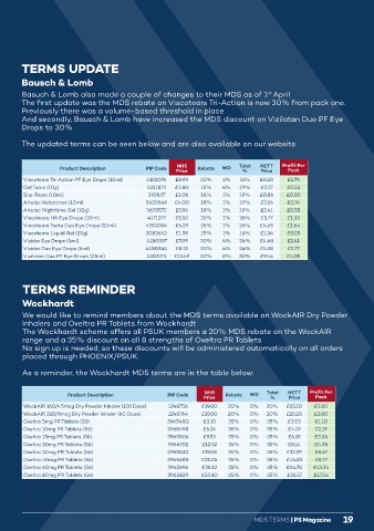 The first update was the MDS rebate on Viscotears Tri-Action is now 30% from pack one.