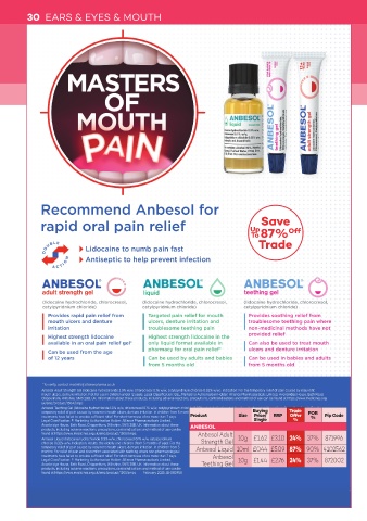 temporary relief of pain caused by recurrent mouth ulcers, denture irritation. In children from 5 Anbesol Liquid 10ml £0.44 £5.09 87% 90% 4102562