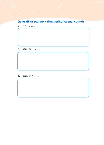 Selesaikan soal perkalian berikut sesuai contoh ! a. 110 4 = ... b. 330 3 = ... c. 220 4 = ...