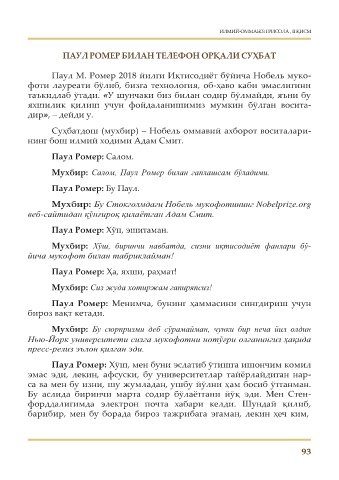 ПАУЛ РОМЕР БИЛАН ТЕЛЕФОН ОРҚАЛИ СУҲБАТ