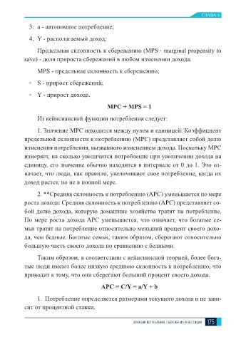 ФУНКЦИИ ПОТРЕБЛЕНИЯ, СБЕРЕЖЕНИЯ ИНВЕСТИЦИИ 175