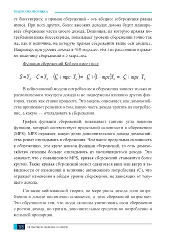 к сбережению, тем круче наклон функции сбережений, то есть домохо-
