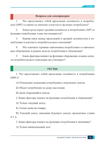 ФУНКЦИИ ПОТРЕБЛЕНИЯ, СБЕРЕЖЕНИЯ ИНВЕСТИЦИИ 195