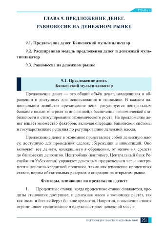 ПРЕДЛОЖЕНИЕ ДЕНЕГ. РАВНОВЕСИЕ НА ДЕНЕЖНОМ РЫНКЕ 251