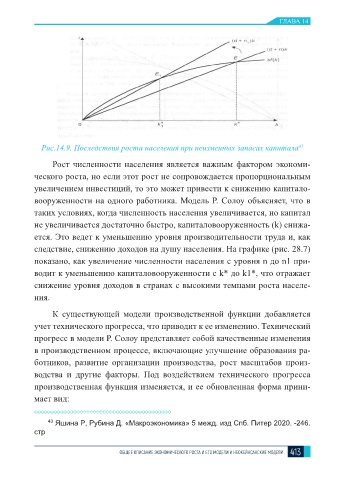 Рис.14.9. Последствия роста населения при неизменных запасах капитала 43
