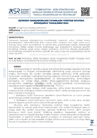 Page 29 - “O‘ZBEKISTON – 2030 STRATEGIYASI: AMALGA OSHIRILAYOTGAN ISLOHOTLAR TAHLILI, MUAMMOLAR VA YECHIMLAR”