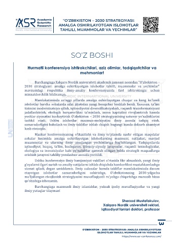 Page 6 - “O‘ZBEKISTON – 2030 STRATEGIYASI: AMALGA OSHIRILAYOTGAN ISLOHOTLAR TAHLILI, MUAMMOLAR VA YECHIMLAR”
