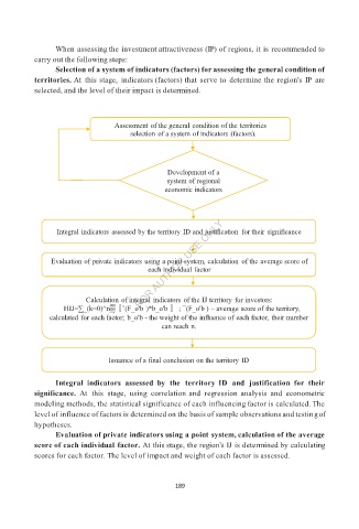 territories. At this stage, indicators (factors) that serve to determine the region's IP are