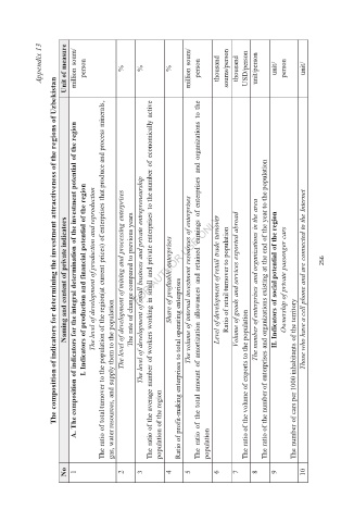 The composition of indicators for determining the investment attractiveness of the regions of Uzbekistan