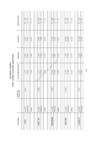 Descriptive statistics of the variables used in the panel model STANDARD DEVIATION 1.471 0.641 1.334 1.277 0.376 1.224 0.296 0.148 0.258 0.738 0.764 0.021 1.270 0.595 279