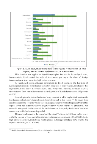capital) and the volume of created GNI, in billion soums