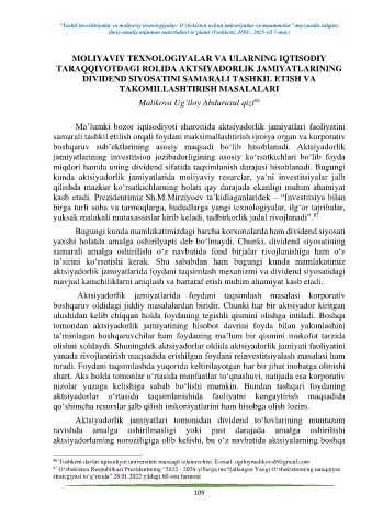 Page 109 - "Green Investments and financial technologies: opportunities and challenges for Uzbekistan" International Scientific and Practical Conference