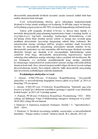 Page 112 - "Green Investments and financial technologies: opportunities and challenges for Uzbekistan" International Scientific and Practical Conference
