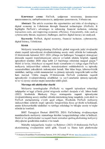 ham mavjud. Ushbu maqola O‘zbekistonda FinTech yordamida raqamli