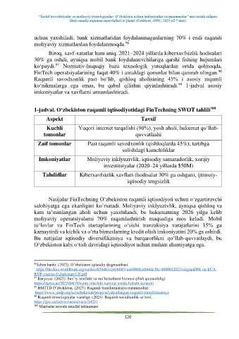 Page 120 - "Green Investments and financial technologies: opportunities and challenges for Uzbekistan" International Scientific and Practical Conference