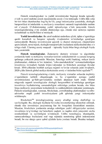 Page 123 - "Green Investments and financial technologies: opportunities and challenges for Uzbekistan" International Scientific and Practical Conference