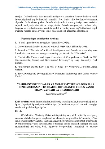 Page 126 - "Green Investments and financial technologies: opportunities and challenges for Uzbekistan" International Scientific and Practical Conference