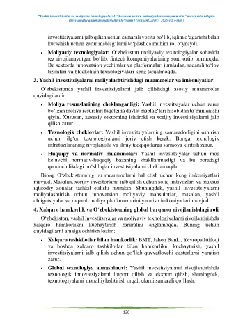 Page 128 - "Green Investments and financial technologies: opportunities and challenges for Uzbekistan" International Scientific and Practical Conference
