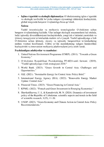 Page 129 - "Green Investments and financial technologies: opportunities and challenges for Uzbekistan" International Scientific and Practical Conference