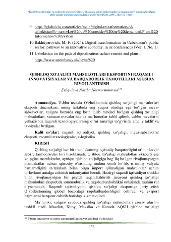 o‘ynamoqda. Raqamli iqtisodiyotni qishloq xo‘jaligi eksportiga joriy etish