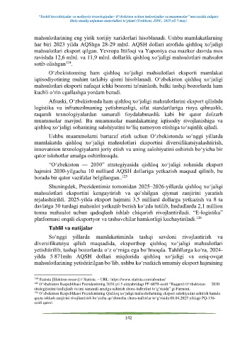 rejalashtirildi. 2025-yilda eksport hajmini 3,5 milliard dollarga yetkazish va 8 ta