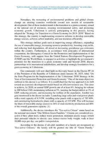 Page 150 - "Green Investments and financial technologies: opportunities and challenges for Uzbekistan" International Scientific and Practical Conference